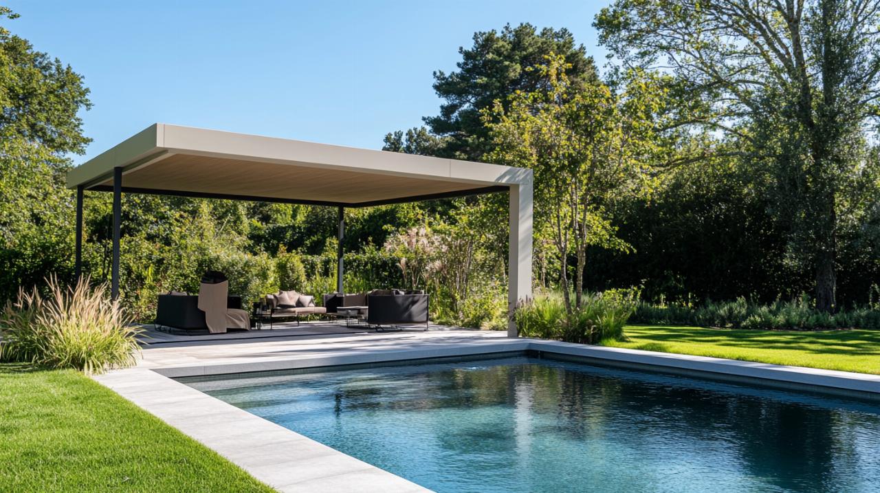 Les abris bas représentent un excellent compromis entre protection et accessibilité. Avec leur structure en aluminium et leurs parois en polyméthracrylate, ils permettent de prolonger la saison de baignade de plusieurs mois en conservant une eau chaude et propre. Les abris mi-hauts, pouvant atteindre une hauteur de 1,80 mètre, offrent un espace plus généreux tout en restant soumis à une simple déclaration préalable de travaux dans la plupart des cas. Pour les projets plus ambitieux, les abris hauts peuvent mesurer de 1,80 mètre à plus de 3 mètres de hauteur, créant un véritable espace de vie autour de la piscine. Ces modèles permettent de se baigner toute l'année et d'aménager un espace détente confortable, nécessitant toutefois un permis de construire en raison de leur envergure.